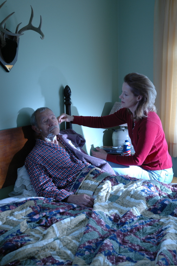 The Mother (Rachel Harker) shaves The Grandfather (Chuck Brinig).